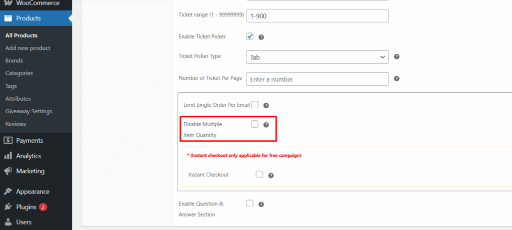 Home » WooCommerce Giveaway Lottery Documentation » Ticket picker » Disability of multiple orders