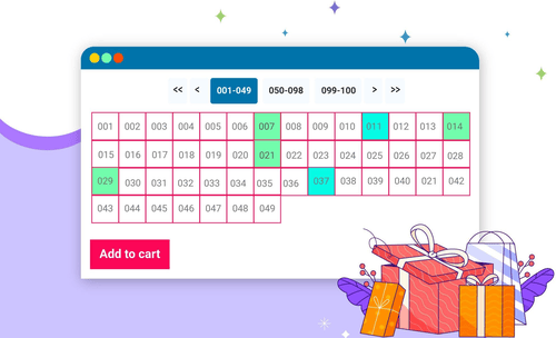 Let clients select a lucky ticket number on the product page, participating interactively in your giveaway lottery for WooCommerce.