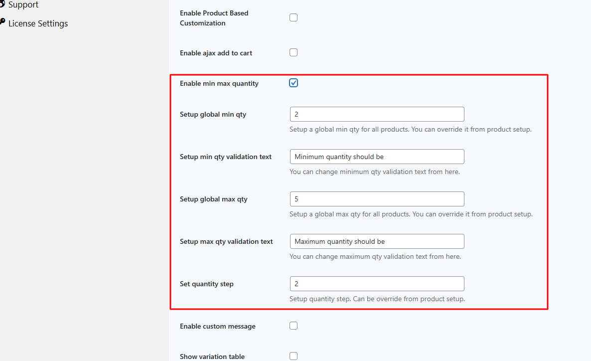 Home » WooCommerce Product Page Customizer » Advance Settings » Enable Min Max Quantity (Pro) » image