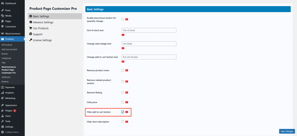 Sometimes, we want to display a product in catalog mode, but we cannot remove the Add to Cart button easily. Now, the Single Product Page Customizer plugin offers this option. Simply check the “Hide Add to Cart Button” setting, and the Add to Cart button will be hidden.