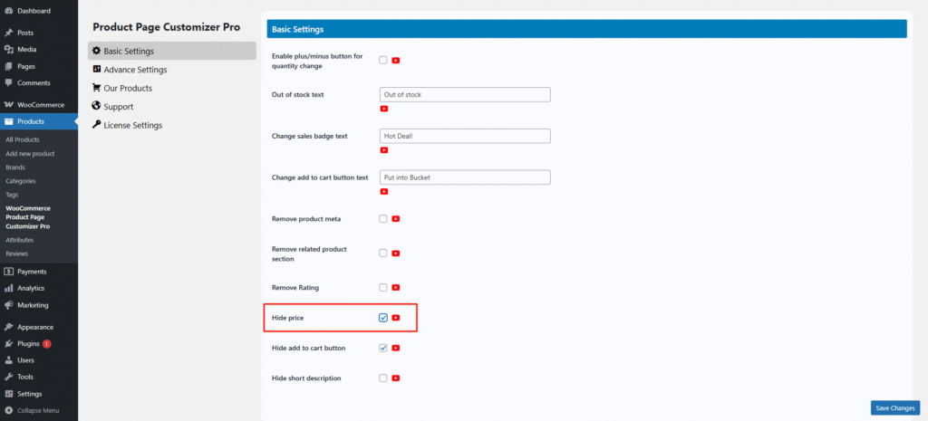 Sometimes, we want to display a product in catalog mode, but we cannot remove the price section easily. Now, the Single Product Page Customizer plugin offers this option. Simply check the “Hide Price” setting, and the price section will be hidden.