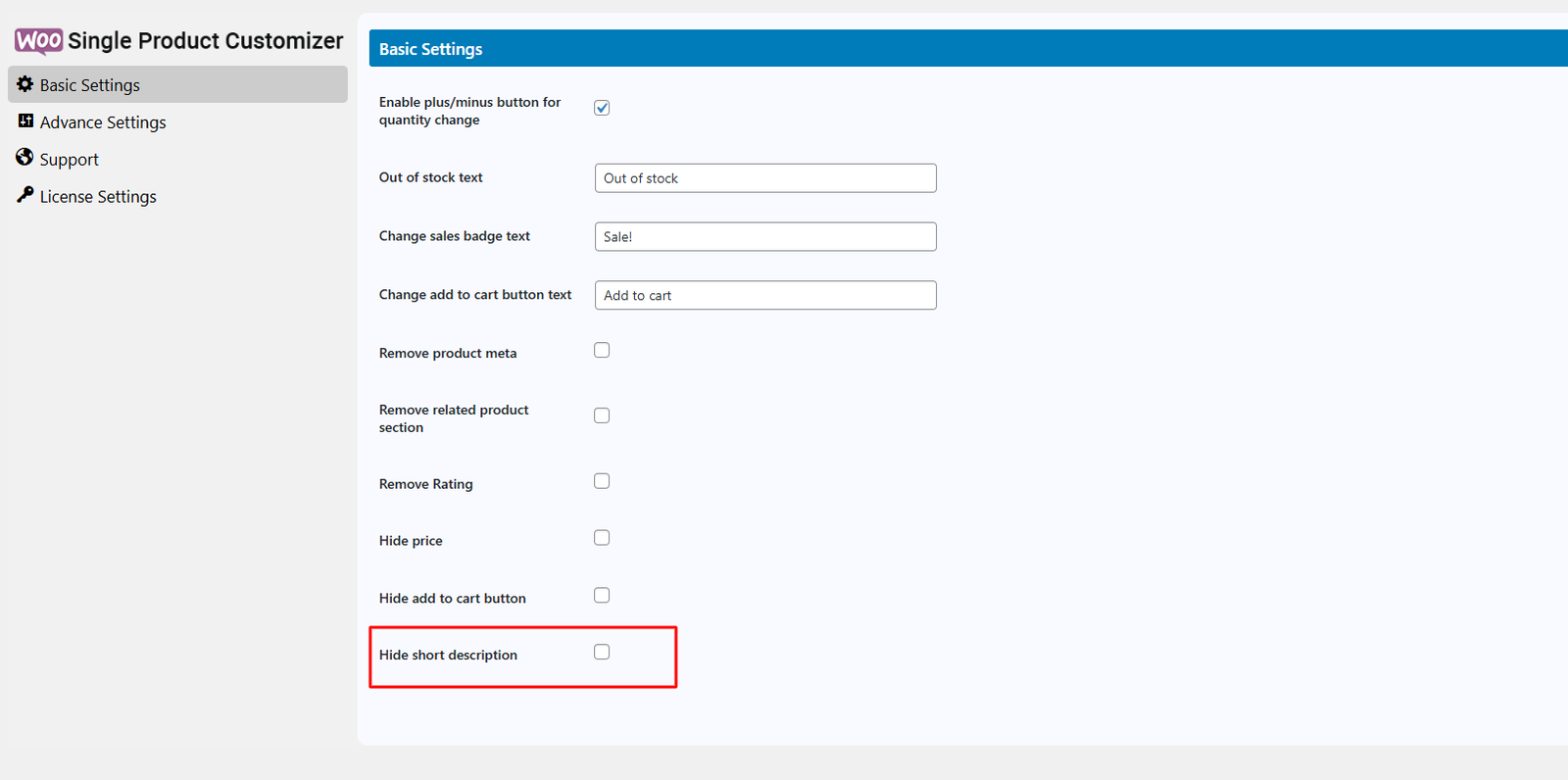 Home » WooCommerce Product Page Customizer » Basic Settings » How to Hide Short Description » image