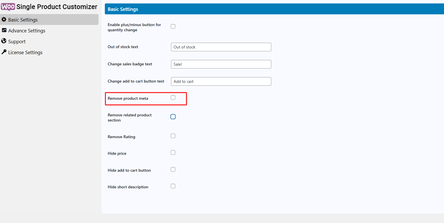 Home » WooCommerce Product Page Customizer » Basic Settings » How to Remove Product SKU, Category, Tag » image