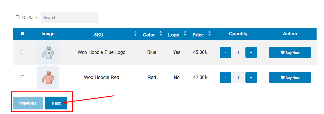 Home » Variation Monster for WooCommerce » Table Setting » How to Change Pagination Button Text Hover Color » image