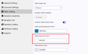 Home » Variation Monster for WooCommerce » Table Setting » How to Change Table Head Text Color » image