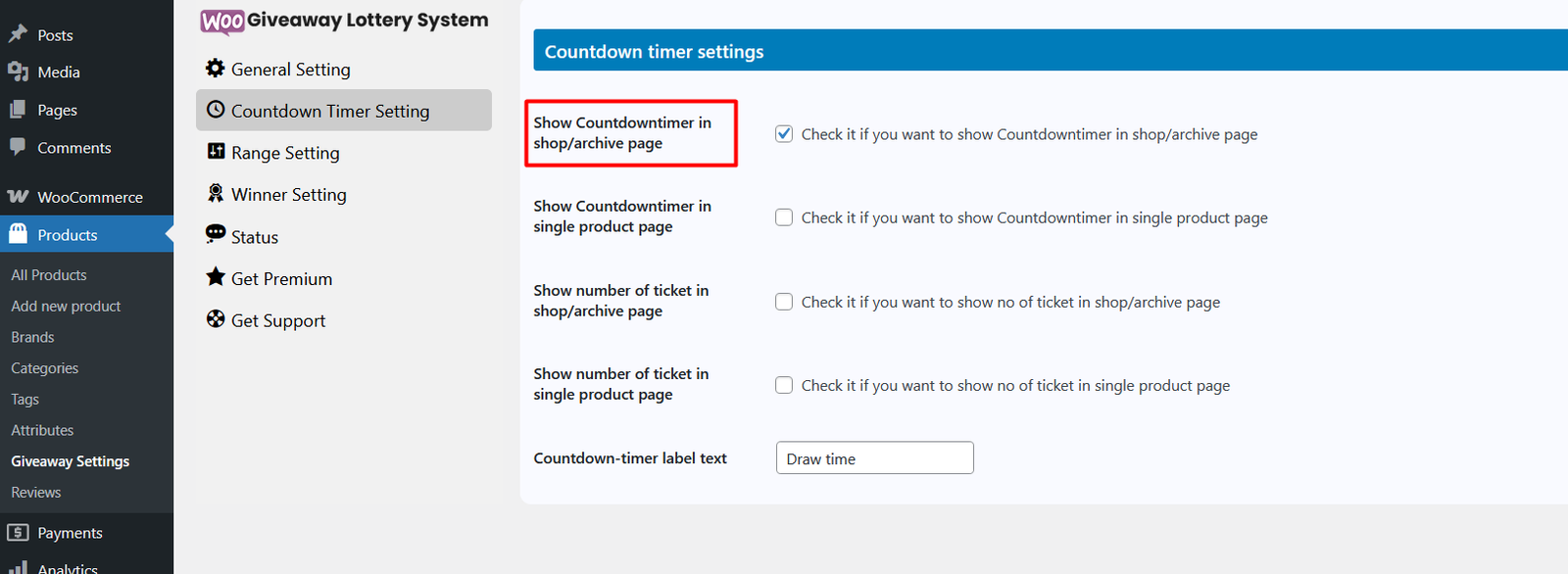 Home » WooCommerce Giveaway Lottery Documentation » Countdown timer settings » Countdown Timer Display on Archive Pages » image