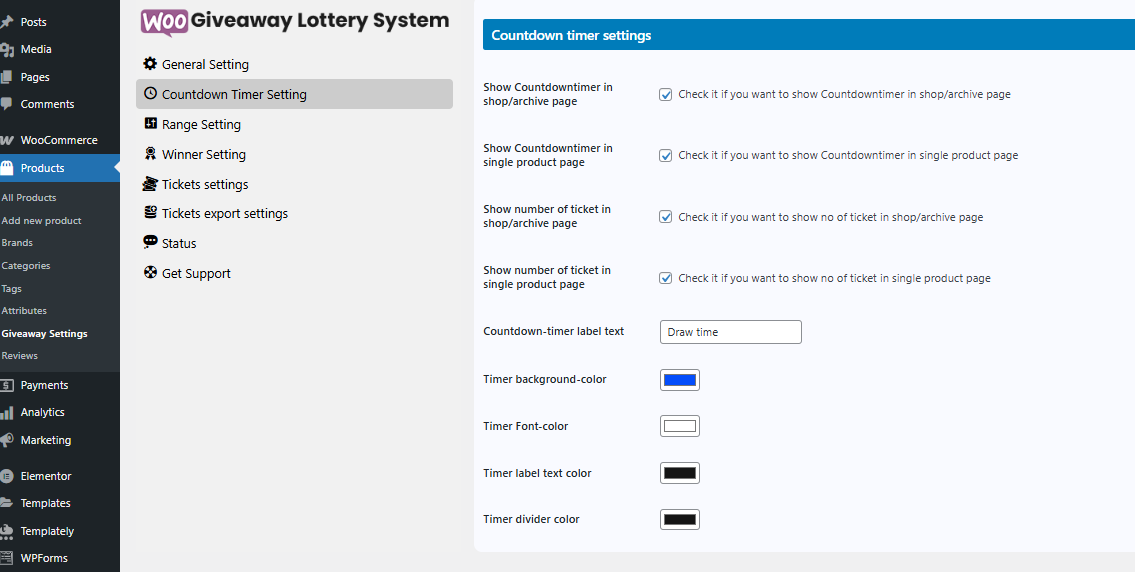 Home » WooCommerce Giveaway Lottery Documentation » Countdown timer settings » How to setup Countdown timer Label text » image