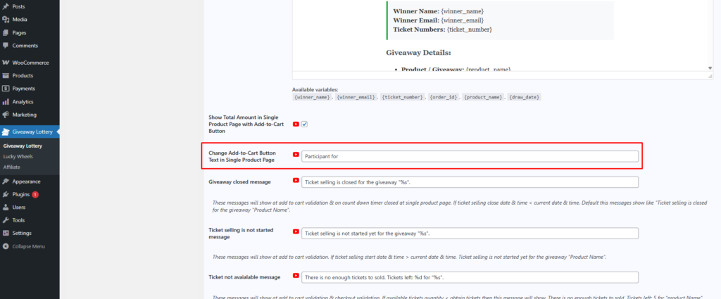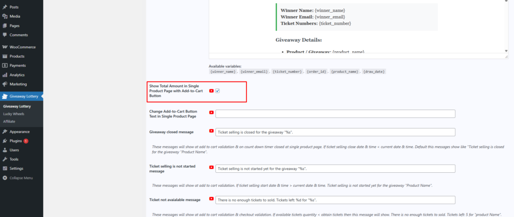 The Show Total Amount in Add-to-Cart Button feature in Giveaway Lottery for WooCommerce enhances the single product page experience by dynamically displaying the total purchase amount directly inside the Add-to-Cart button.