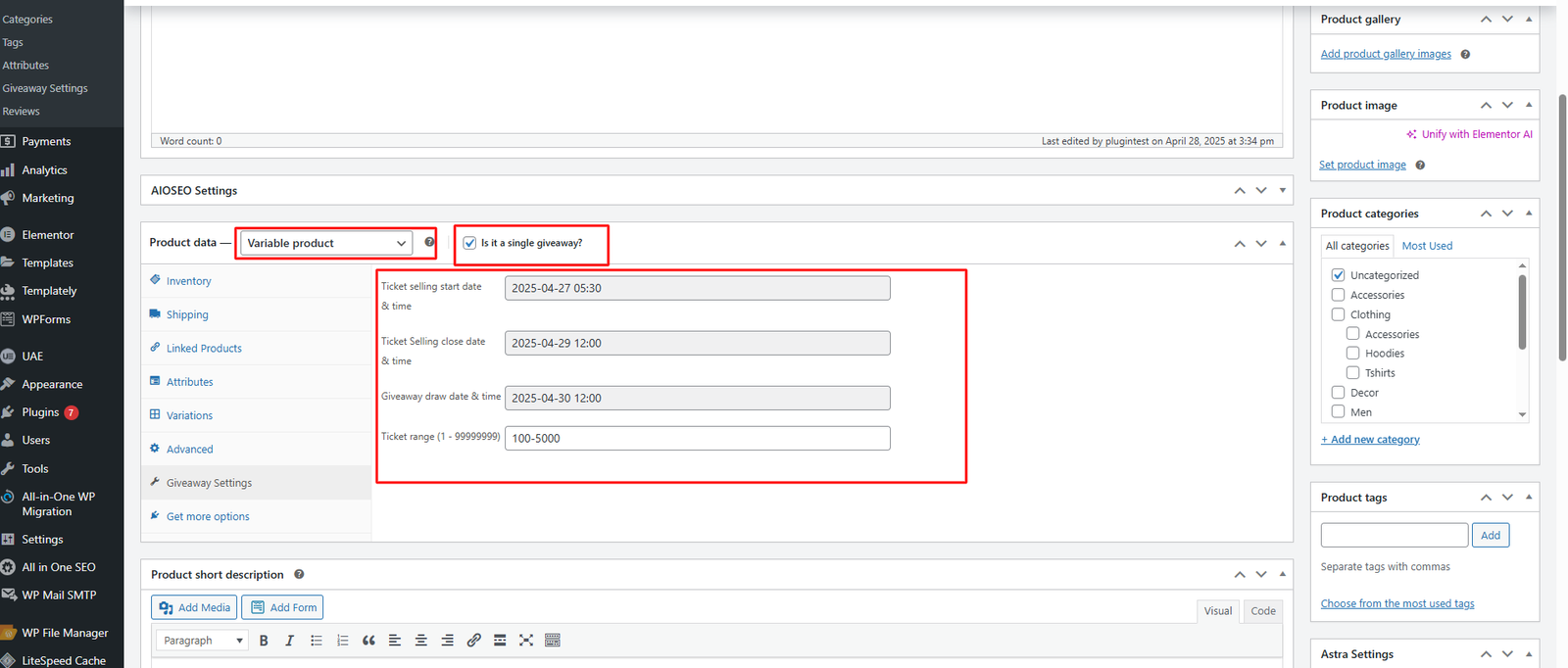 Home » WooCommerce Giveaway Lottery Documentation » Giveaway settings » How to Set Up Giveaway Tickets for Variable Product in WooCommerce » image