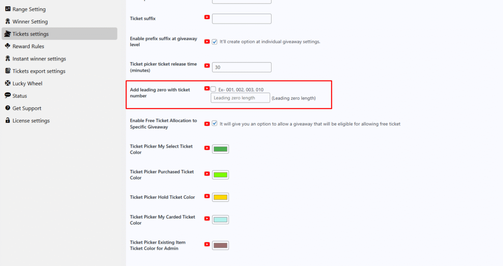 When this option is enabled, ticket numbers will display with leading zeros by default (e.g., 001, 002, 003, 010).