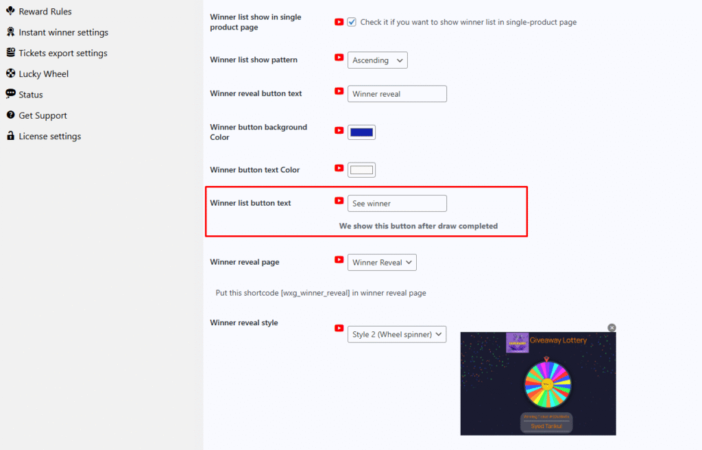 Home » WooCommerce Giveaway Lottery Documentation » Winner settings » How to Change Winner List Button Text