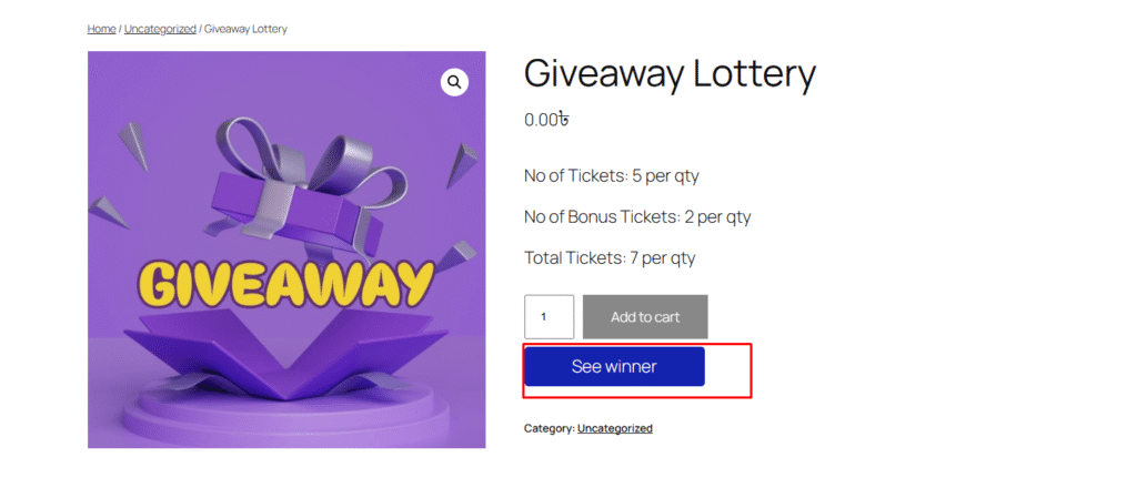 By default, the button text is “See Winner”, but the admin can change it to any custom text as needed. This allows better control over wording and user experience.