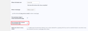 Home » WooCommerce Giveaway Lottery Documentation » Winner settings » Show giveaway title in winner announcement page » image