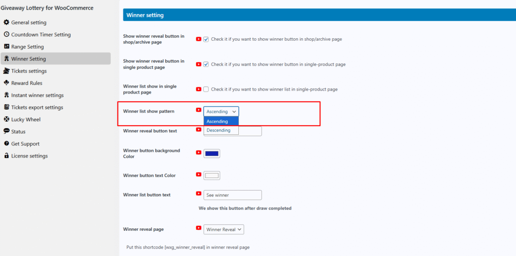 • Ascending: Winners are shown based on date and time from the first to the last.