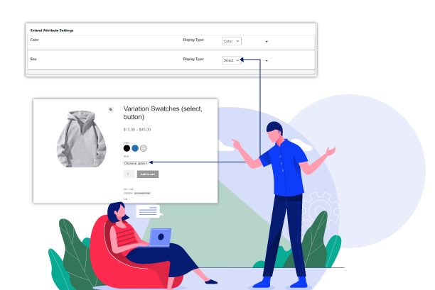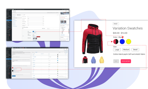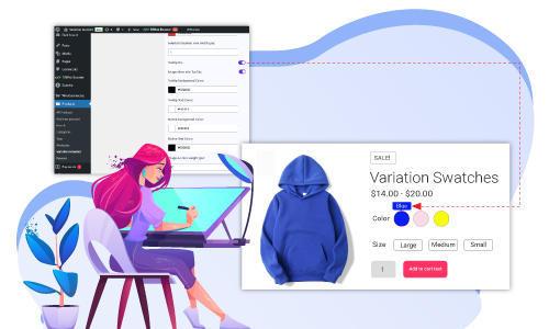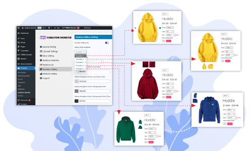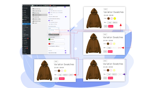 Variation Monster replaces the default WooCommerce dropdowns with interactive color swatches, creating a more engaging shopping experience.