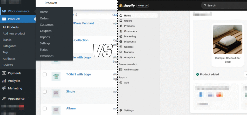 As you can see on the screenshot, Shopify’s dashboard hides complexity, while WooCommerce exposes every lever of your store.